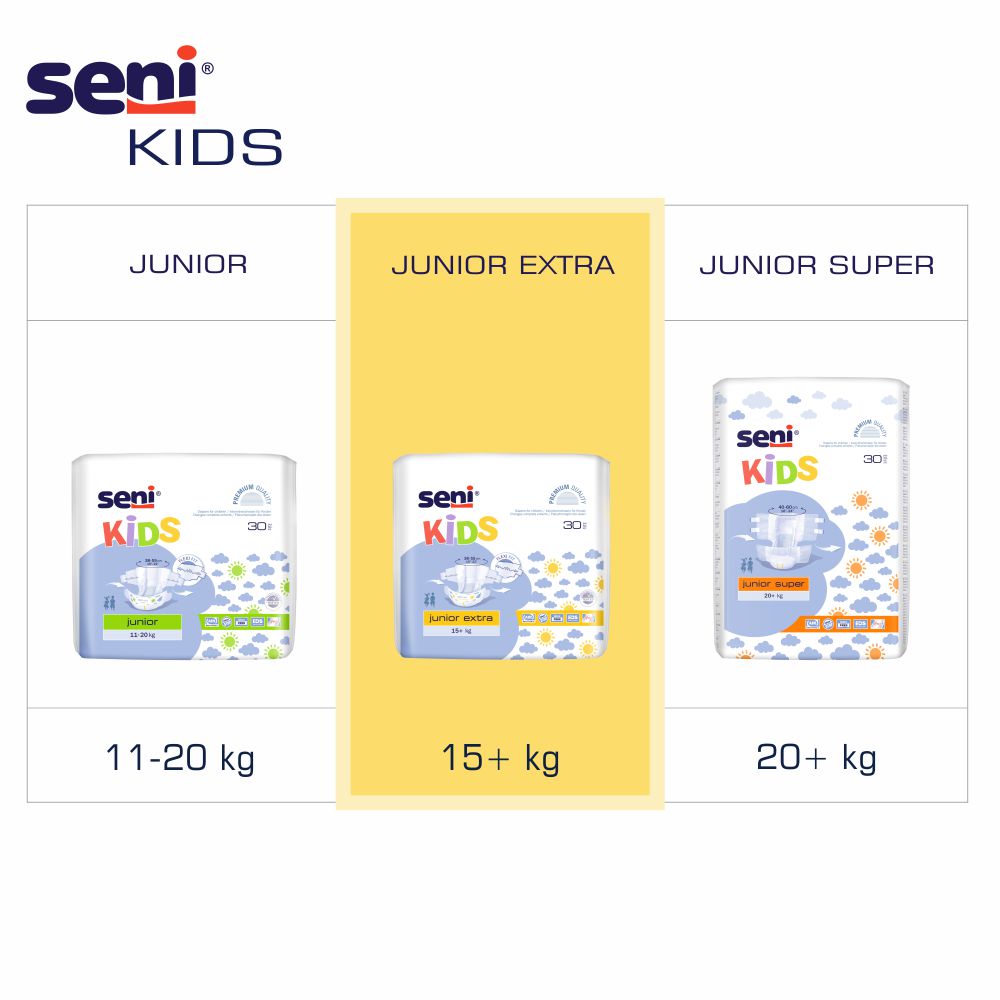 Produktinformationen "Seni Kids Junior Extra - 30 Windeln für Kinder mit Harn- und Stuhlinkontinenz"