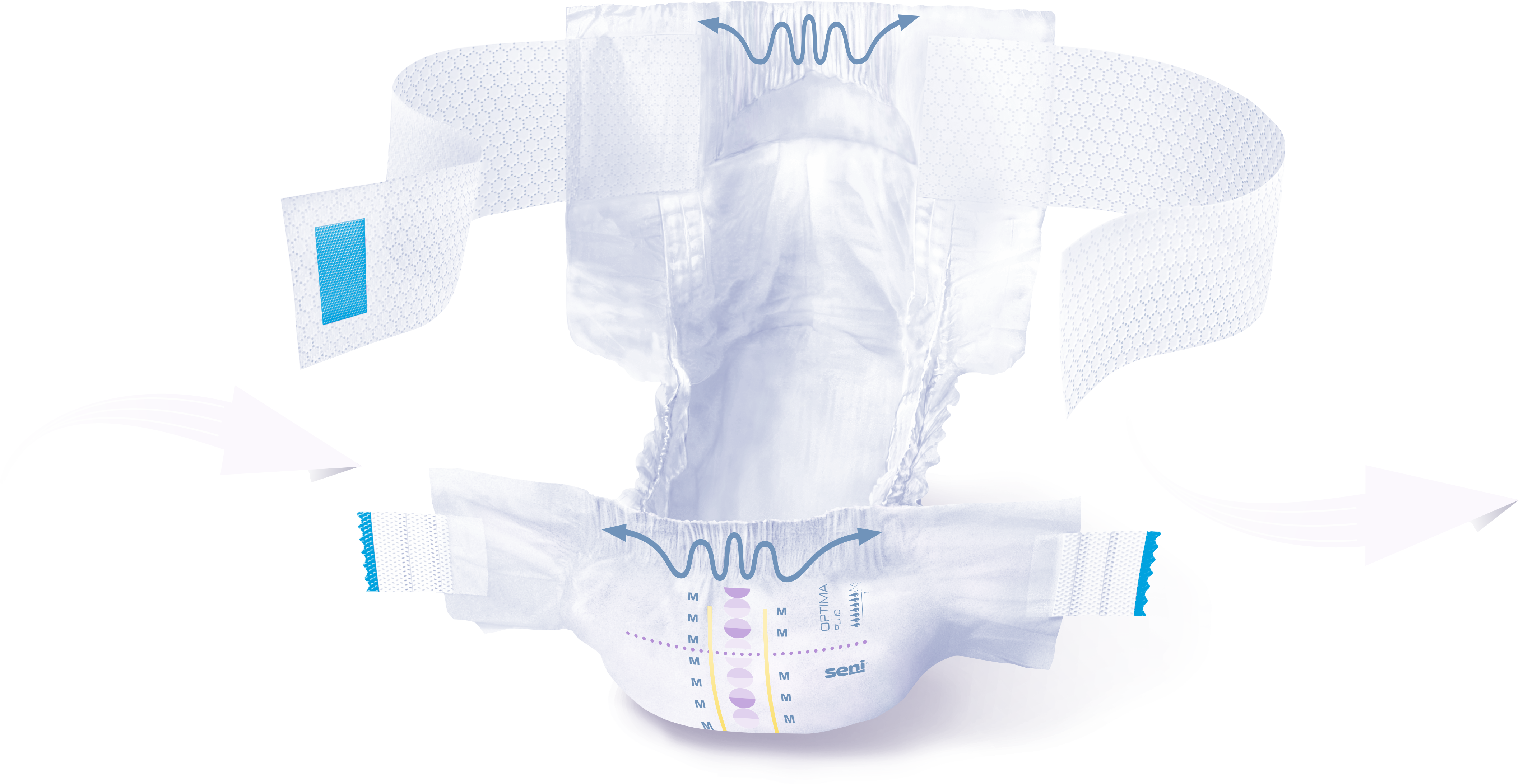 Die atmungsaktiven Inkontinenzvorlagen mit Hüftbund für Menschen mit schwerer Harn- und Stuhlinkontinenz. Zwei anatomisch geformte Saugkissen aus Zellstoff mit Superabsorber. Die spezielle EDS- Schicht sorgt für eine schnelle Verteilung und Aufnahme der Flüssigkeit in den Saugkern. Flüssigkeitsabweisender, seitlicher Auslaufschutz nach innen gerichtet. Elastische Tailleneinsätze vorne und hinten. Regulierbarer Hüftbund mit Klettverschluss. Zwei Verschlüsse: wiederverschließbare Klettverschlüsse. Doppelter Nässeindikator in Form von gelben Streifen - die Anzeige ändert sich beim Kontakt mit Feuchtigkeit im Inneren des Produktes. Der Aufdruck verblasst und verschwimmt. Die gelben Streifen verändern ihre Farbe in Grün. Atmungsaktive Außenschicht.
