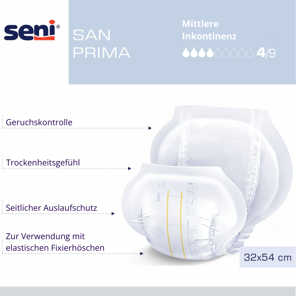 Produktinformationen "Seni San Prima - 30 Inkontinenzvorlagen bei mittlerer Blasenschwäche"
