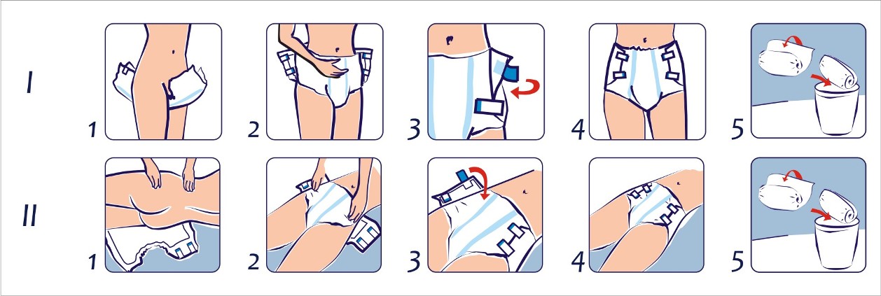 Inkontinenzhose für Menschen mit mittlerer bis schwerer Harn- und Stuhlinkontinenz. Zwei anatomisch geformte Saugkissen aus Zellstoff mit Superabsorber. Flüssigkeitsabweisender, seitlicher Auslaufschutz nach außen gerichtet. Elastisches Garn in Seitenbündchen im Schrittbereich schützt vor Flüssigkeitsauslaufen. Vier Klebeklettverschlüsse wiederverschließbar. Nässeindikator - die Anzeige ändert sich beim Kontakt mit Feuchtigkeit im Inneren des Produktes. Der Aufdruck verblasst und verschwimmt. Atmungsaktive Außenschicht in mittlerem Bereich, atmungsaktives Vlies im Hüftbereich.
